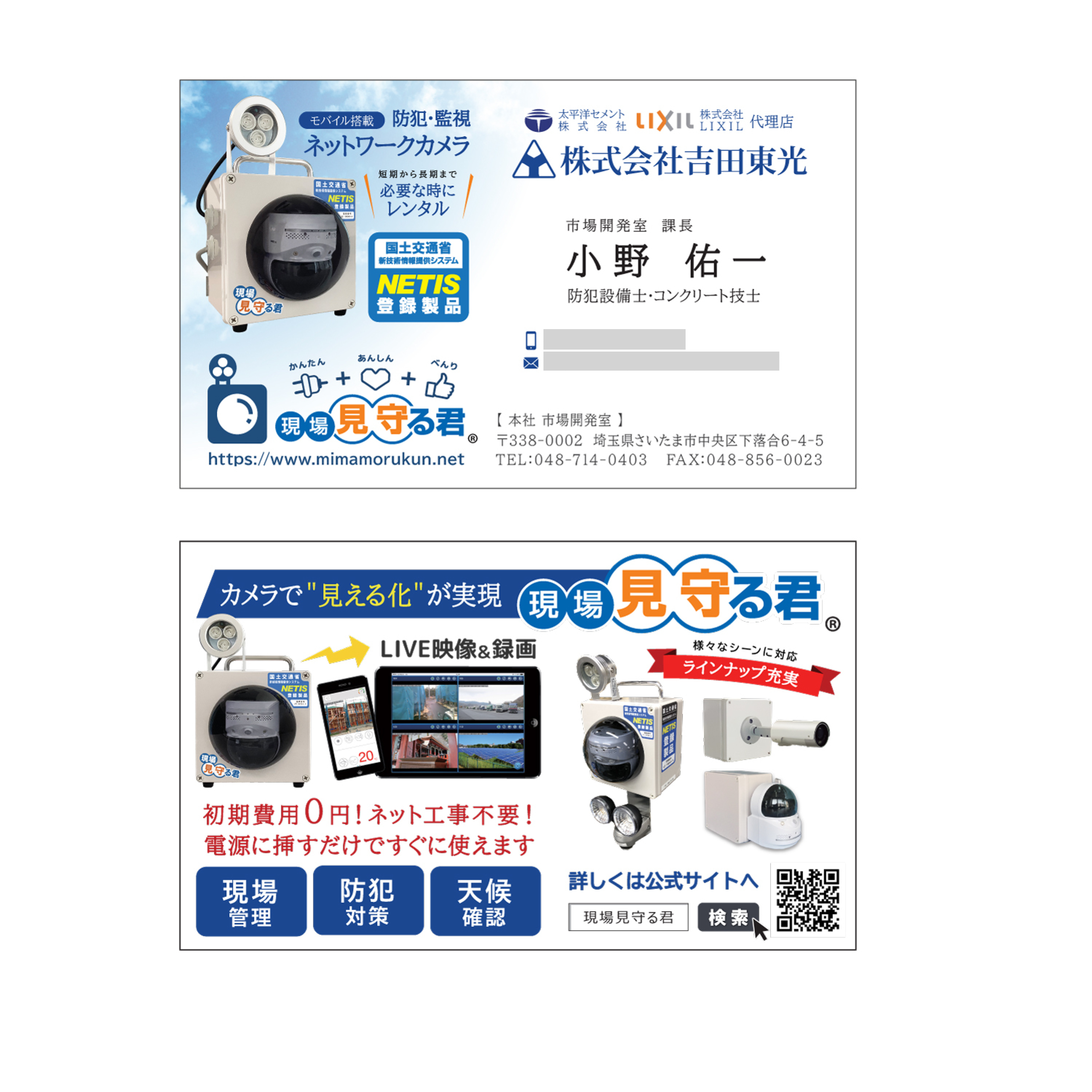 ネットワークカメラでお世話になっている、吉田東光様の販促名刺リニューアルのご依頼を頂きました。