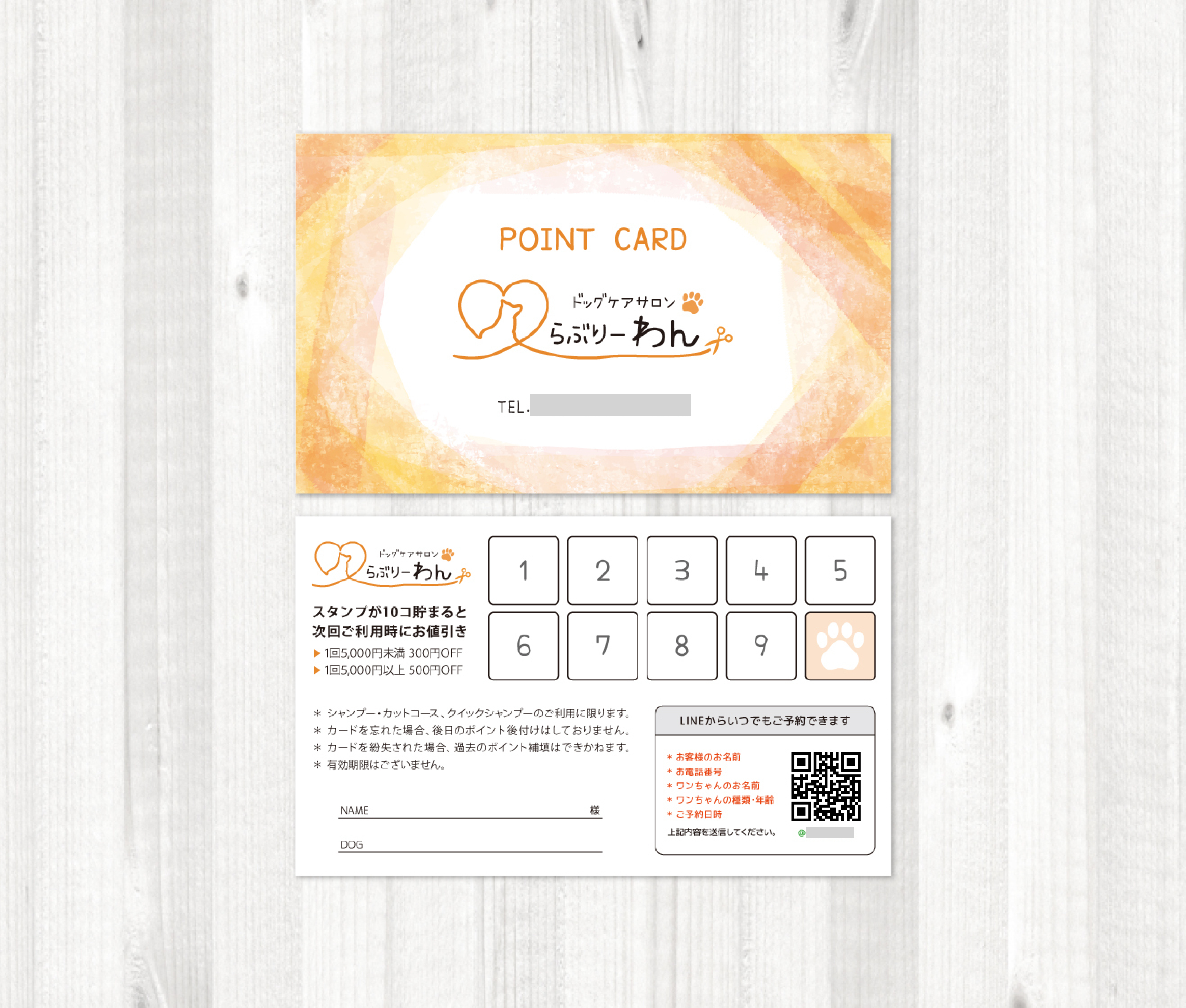 ドッグケアサロン らぶりーわん様より、ポイントカード制作のご依頼をいただきました、ありがとうございます。