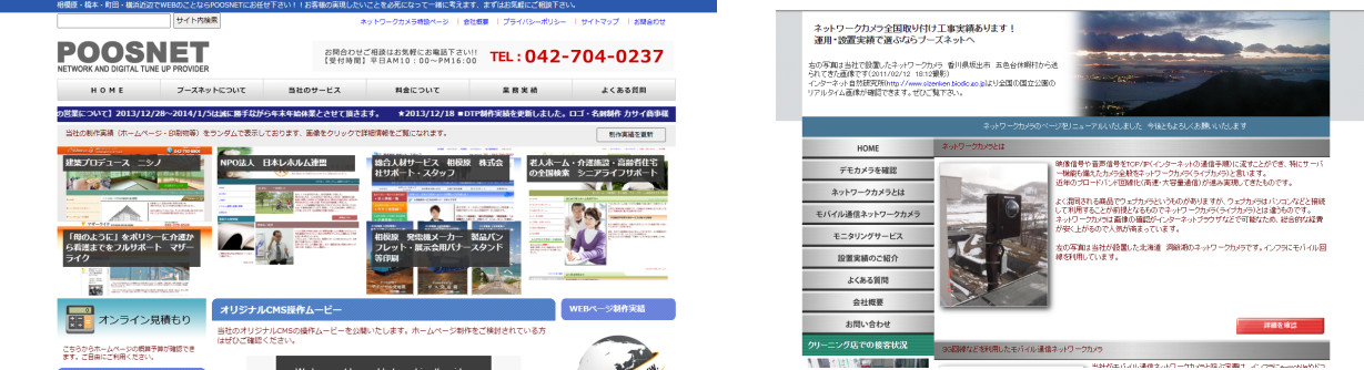 | 事業内容 | ■ホームページ制作(HP制作) ウェブページ制作(WEB制作)、独自CMS(コンテンツマネジメントシステム)、SEO対策 ■システム開発 システム構築、ウェブアプリケーション制作(WEBアプリ制作)、ネットワークカメラASPシステム開発 タイムカードASPシステム開発・レンタル、WEBページ用オリジナルCMS開発、POSレジシステム ■ネットワークカメラ ネットワークカメラ施工・運営、ネットワークカメラASPシステムレンタル ■PC総合サービス 社内LAN設定構築、パソコンリモートサービス、パソコン出張サポート、法人向けPC定期メンテナンス保守 ■DTP(印刷物制作) DTPデザイン、各種印刷 |