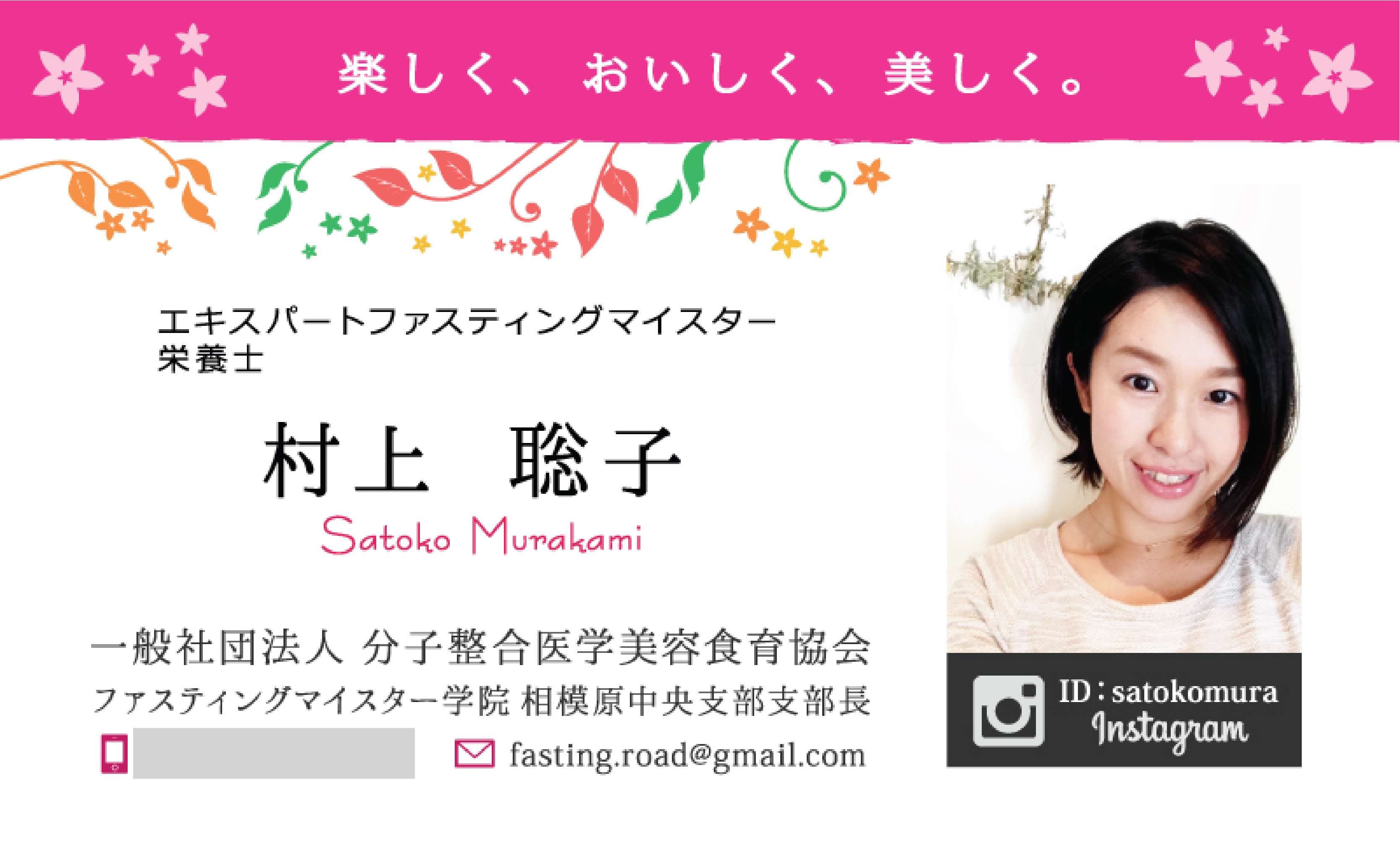 ファスティング(断食)などの美容健康食育に関しての指導などを行っている、栄養士でもある村上様より名刺のご依頼を頂きました。